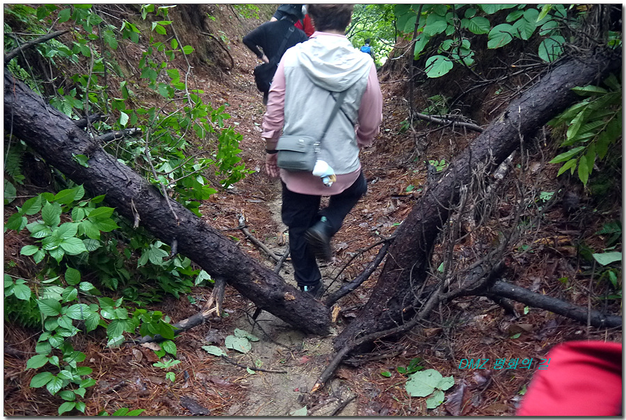 어제 내린 비로인해 쓰러진 나무들이 여기저기 많았다. 바람도 제법 세게 불긴 하였지만 이렇게 나무들이 많이 쓰러져 있을 줄 몰랐다. 관계자들이 미쳐 쓰러진 나무를 치우지 못한 상태라 나무를 피하여 걷는데 어려움이 있었다.(이때가 6월 장마철인지, 짧은 장마가 끝났던지 그랬지 싶다.)