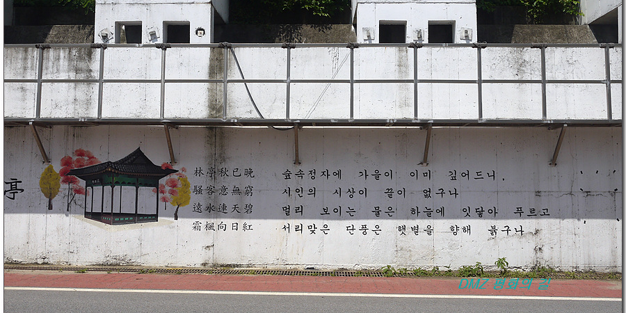 대전차 장애물 벽면에 이이 율곡이 8세에 지었다는 팔세부시(八歲賦詩)를 적어 놓았다. 읽어보면 참으로 놀랍다.