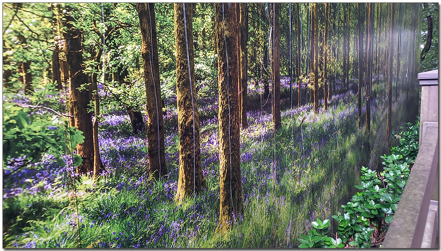 아이샤 힐링숲 올라가는 길에 설치되어 있는 가림막 그림이 요즘 한창 예쁘게 피는 맥문동꽃 그림이다.