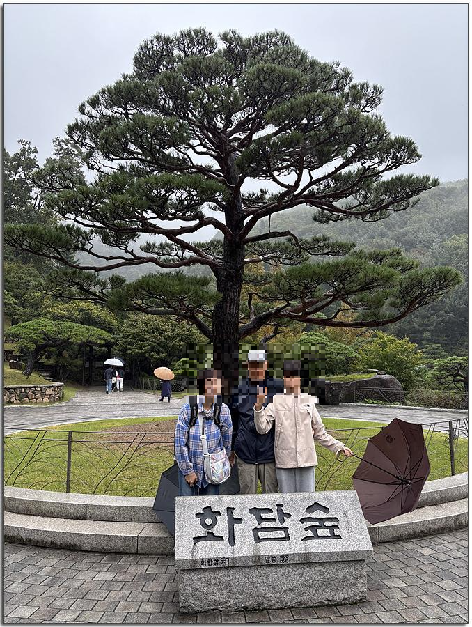 긴 추석 연휴에 가족이 함께 보냈다. 추석 전 연휴에 아들은 처가집에 2박 3일로 먼저 다녀왔다. 10월 3일 가는 날 도로정체가 극심하였고, 일요일 올라올 때는 덜하긴 했어도 여전히 정체가 심했다고. 그리고 추석 당일은 우리집에서 보내고 다음날에는 곤지암으로 갔다. 우선 곤지암리조트에 체크인을 하고 셔틀버스를 타고 화담숲으로 갔다. 이날은 비가 종일 왔다. 그럼에도 불구하고 사람들이 어찌나 많은지 복잡하기 이를 데 없었지만 아들이 미리 예약을 해 놓은 터라 큐알코드를 찍고 순조롭게 입장을 하였다.