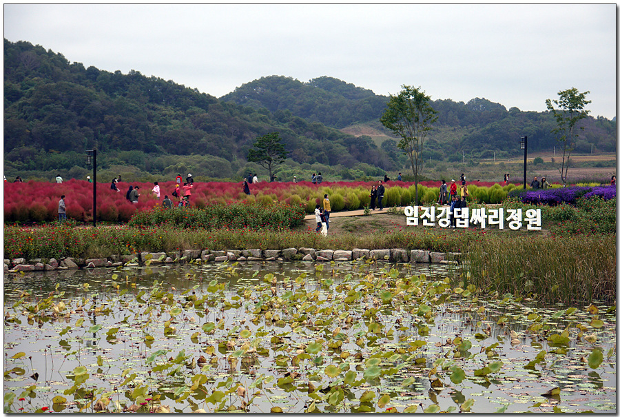 대광리역에 주차해 둔 차를 회수하여 올 때까지 기다렸다가 숙소로 들어가는 길에 임진강댑싸리정원을 들렀다 가기로 하였다. 날씨도 구름 많은 흐린 날이고, 꼭두새벽부터 집을 나선 터라 피곤하여 그냥 숙소로 갔으면 하였지만 결론은 가길 잘했다. 때마침 댑싸리가 어마어마하게 예쁘게 절정이었던 터라 다들 오길 잘했다며 기뻐했다.