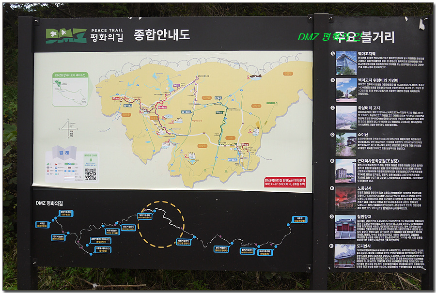 강원도로 들어서며 DMZ평화의 길 철원군 구간을 소개하는 안내문과 그 외 여러 다양한 안내문이 있다.