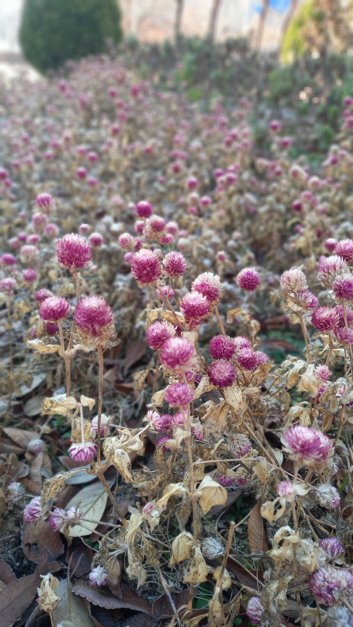 늘 지나 다니는 도로변 작은 정원에 천일홍이 마른 채로 겨울을 나고 있다.