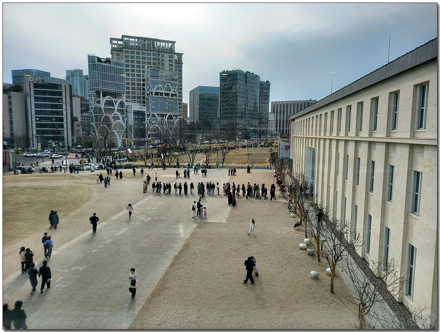 3층 복도에서 내려다 보니 입구에서부터 긴 줄은 여전하다. 날이 그다지 춥지 않아 다행이다.