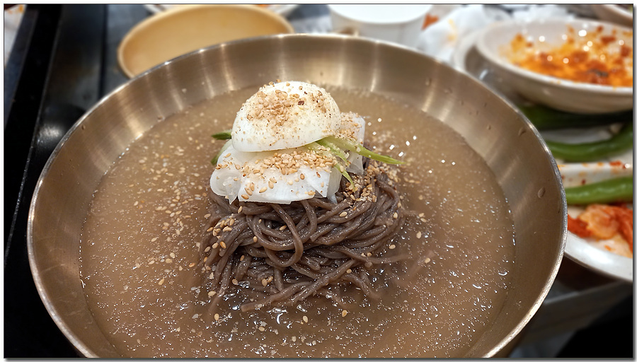 아이들 말에 의하면 오리고기를 먹으면서 냉면을 먹으면 더 맛있다는 리뷰가 많다면서 중간에 냉면을 주문하였다.